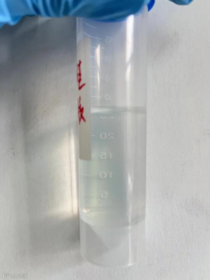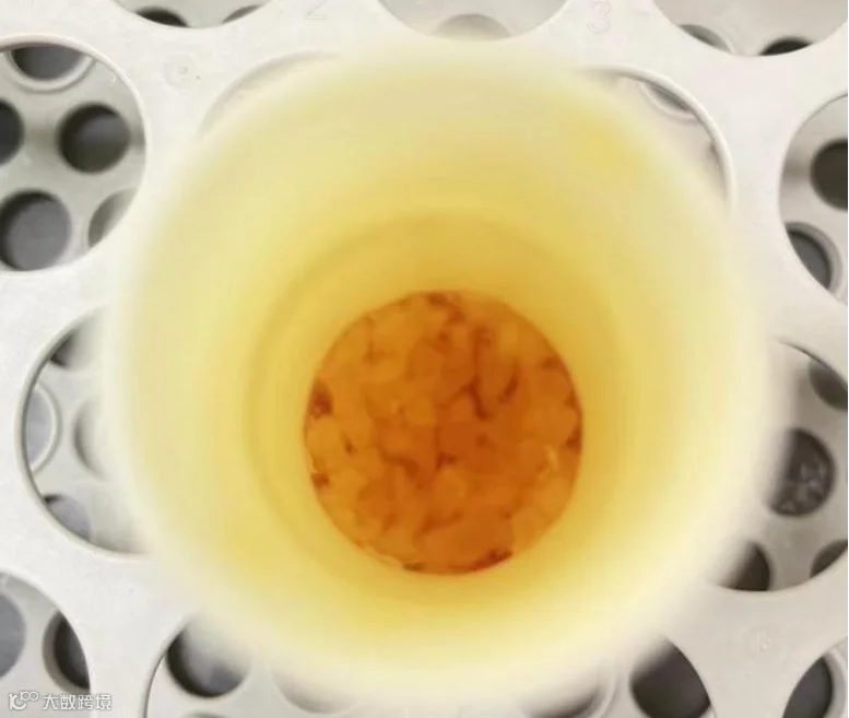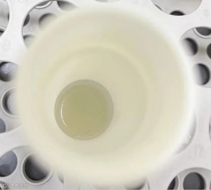 最终的试样已基本消解完全,有极少量黑色不溶物颗粒(可能为硅胶内自带物),试液呈淡黄色。