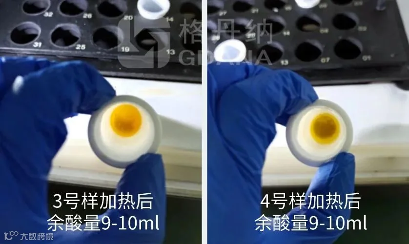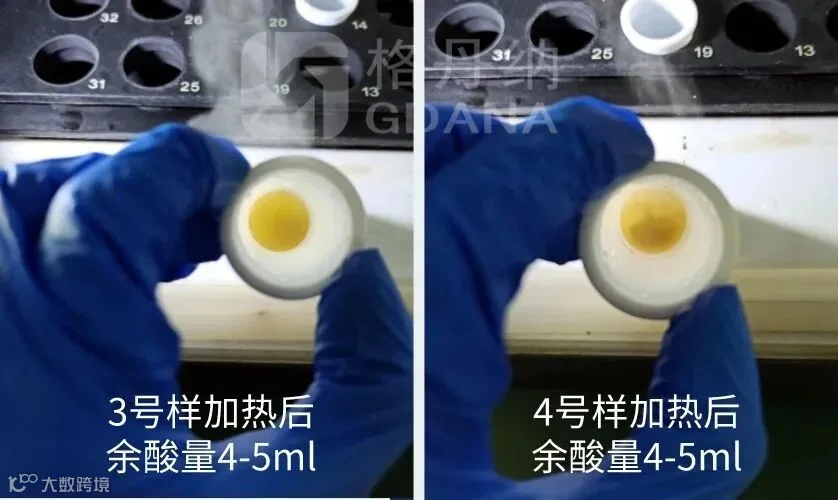 加热后余酸量1-2ml。