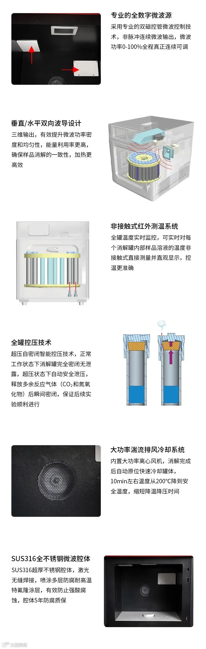 格丹纳微波消解仪是辅助AAS、AFS、ICP、ICP-MS元素分析和GC、HPLC、GCMS等分析的好帮手,具有超高效的样品处理能力,20分钟内完成绝大部分有机/无机/液体/固体样品的处理,如消解、萃取、蛋白水解、浓缩、干燥和有机合成等。