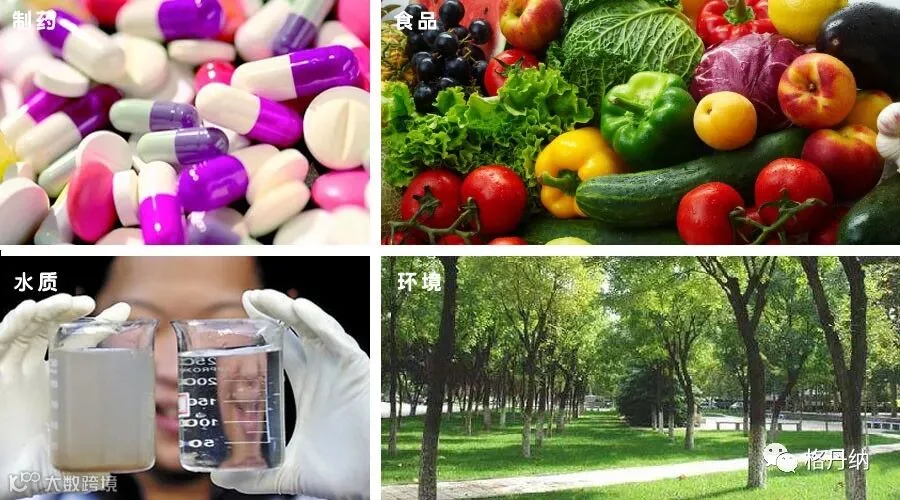 食品分析、水质分析、环境分析、农残兽残分析、生化分析、制药分析等。