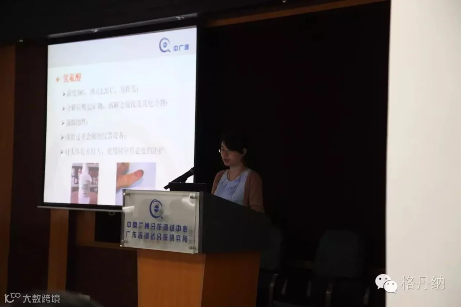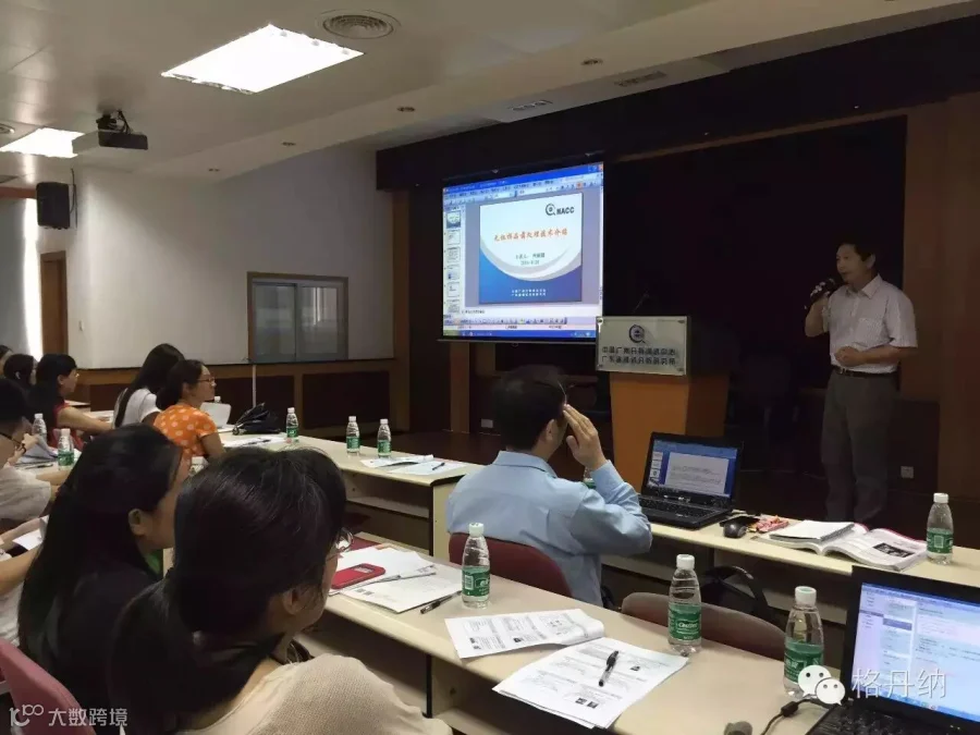 图为:广东省出入境检验检疫局技术中心高级工程师刘江晖在讲授