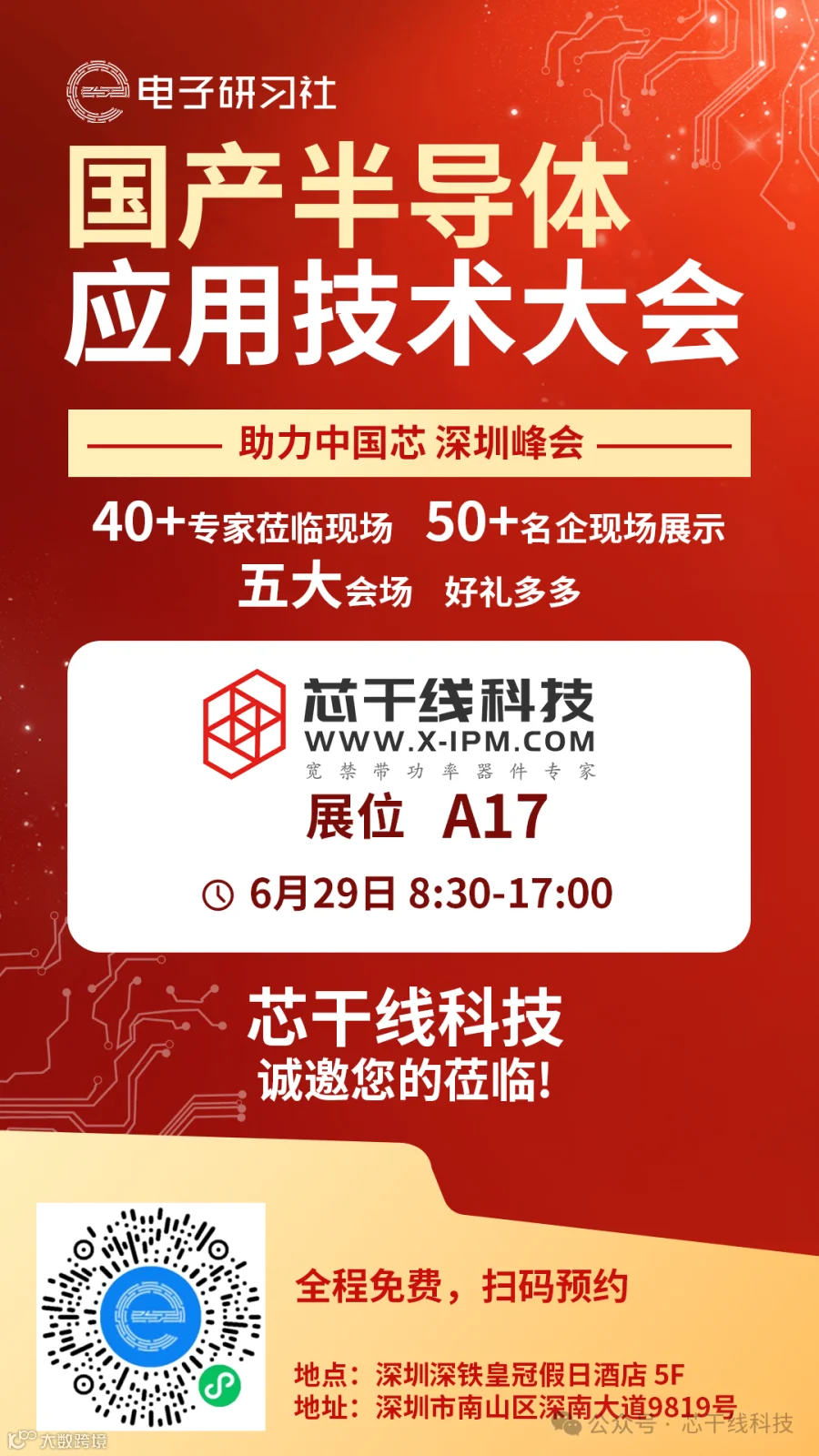 芯干线科技公司作为芯行业领跑者,将携最新半导体前沿技术、创新产品与解决方案亮相,全面参与并助力本次大会,我们诚挚邀请您莅临我们的展位A17,期待与您在这场半导体应用技术盛会中相遇,共同探讨行业未来。扫描下图海报二维码,即可获得免费参展门票~~