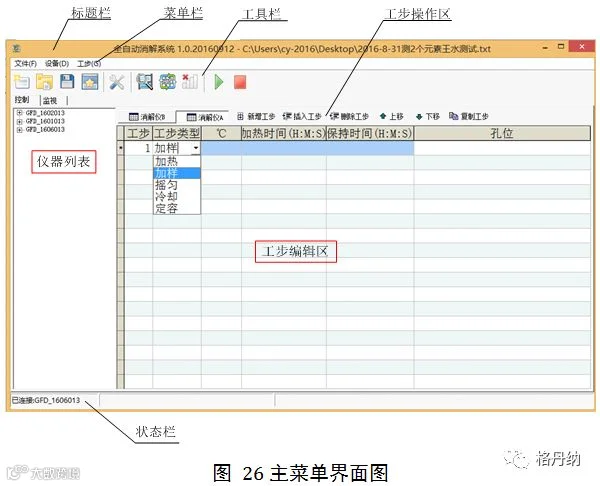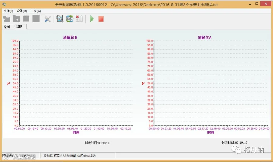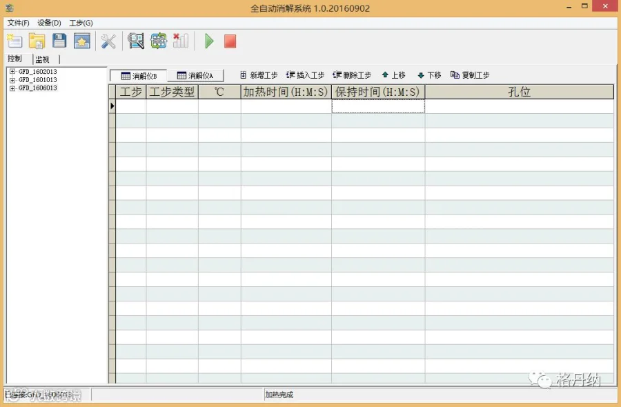 本仪器及软件提供消解仪A、消解仪B两套消解设备,既可选择消解仪A或消解仪B进行单侧消解实验,也可同时选择两台消解设备设置相同或不同的工步进行消解实验,具体介绍如下: