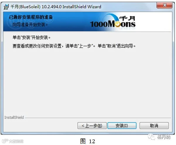 6. 系统弹出安装就绪界面,若需修改各步骤的安装参数设置,请点击“上一步”,然后在返回的界面中修改参数;若无需修改安装参数,请单击“安装”开始安装软件,如图12所示:
