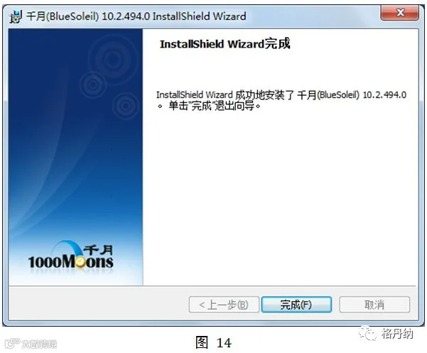 8. 软件安装完成后,弹出安装完成界面,点击“完成”结束安装,如图14所示: