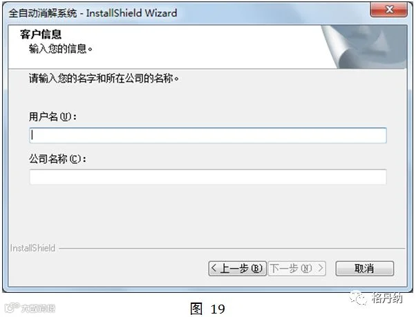4.系统弹出用户信息界面,填写完整的用户信息后,单击“下一步”继续安装,如图19所示: