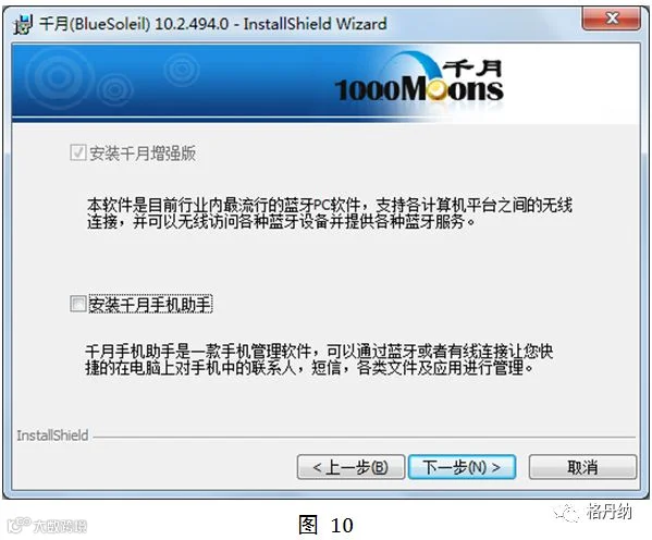 4. 系统弹出安装选项界面,注意此时不要勾选“安装千月手机助手”,然后单击“下一步”继续安装,如图10所示: