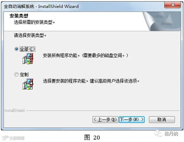 5.系统弹出安装类型界面,选择“全部”选项,单击“下一步”继续安装,如图20所示: