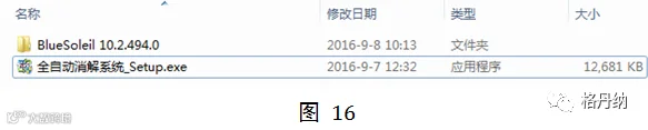 1. 打开光盘,进入文件夹,双击安装文件“全自动消解系统_Setup.exe”,如图16所示: