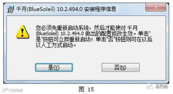 9.此时,系统弹出重启电脑提示,点击“是”重启电脑即可,如图15所示: