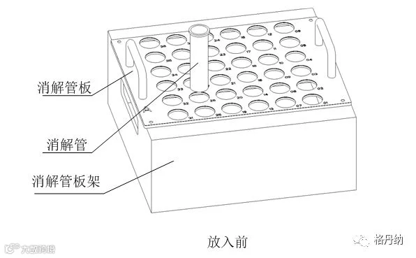 消解管板使用前可先放置在消解管板架上,然后将聚四氟乙烯消解管放进消解管板内,再一并放入到消解仪中,如图5所示: