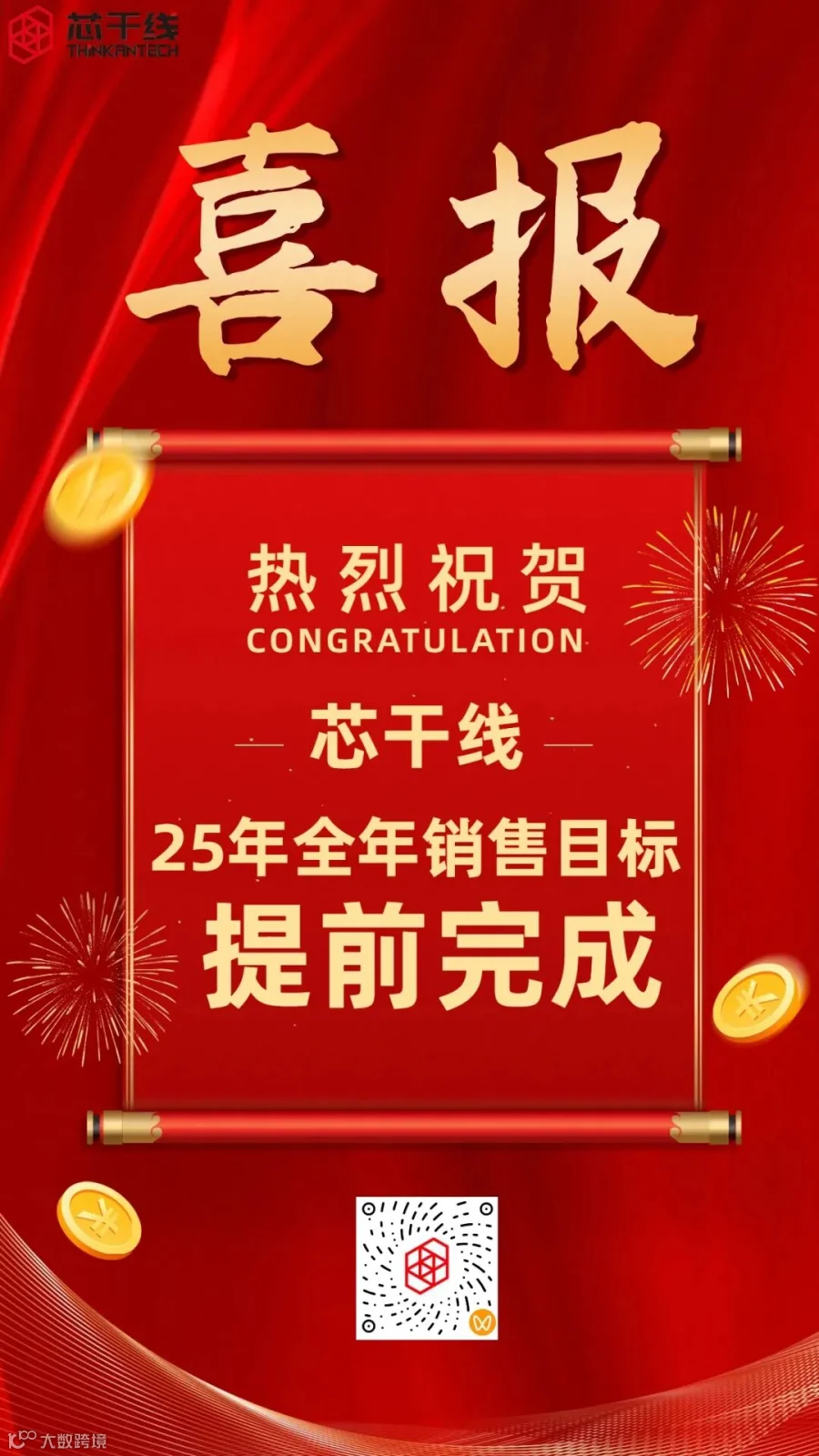 截至7月25日,芯干线2025年全年销售目标已圆满完成!这一里程碑式成果,提前五个月画上句点,既是市场对我们产品实力的认可,更是全体芯干线人并肩作战的勋章。