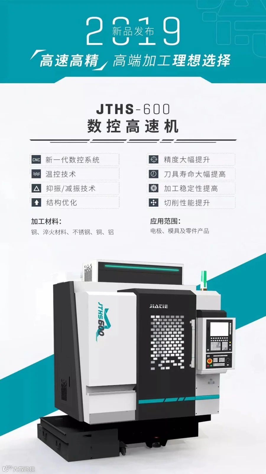JTHS-600是广东佳铁最新推出的一款数控高速机,是中高端模具及高精密零件产品加工的理想选择,加工范围为钢、淬火材料、不锈钢、铜、铝,特别是需要精密合模的工件加工时,JTHS-600可为您实现!