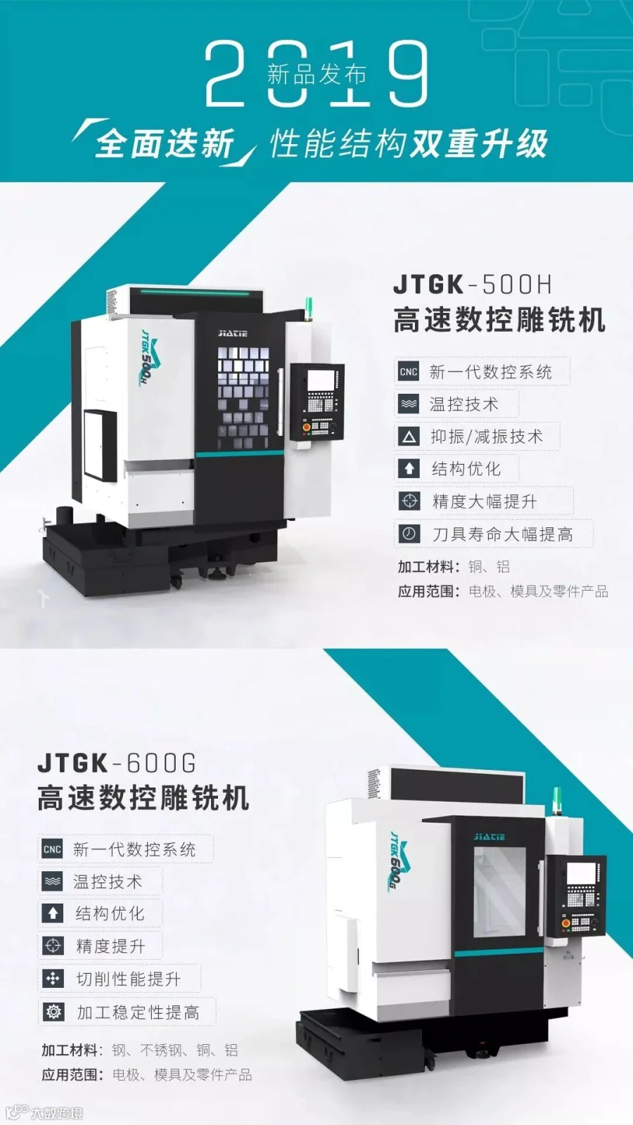 JTGK-500H、JTGK-600G高速数控雕铣机,在原佳铁JTGK系列雕铣机产品经验基础上进行了全新的性能升级和结构优化,大大提高了其加工的效率及质量,大幅延长了刀具寿命,具有极佳的人机交互功能,操作更加方便快捷!