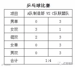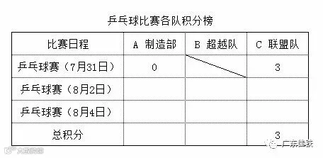 目前为止乒乓球赛各队积分如下: