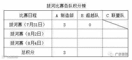 今日拔河比赛各队积分如下:
