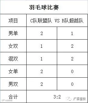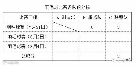 目前为止羽毛球赛各队积分如下:
