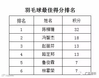 今日羽毛球赛赛果以及个人积分排行榜如下: