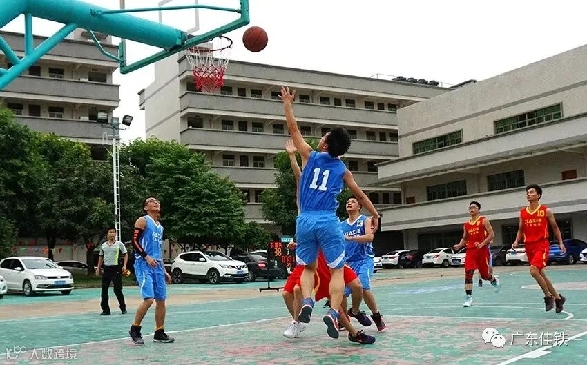 老师评语:远距离投篮瞬间的拍摄效果抓拍较好,5名明运动员的姿势表现出来,稍有欠缺的是场景中铁棚的黑色把画面分割。