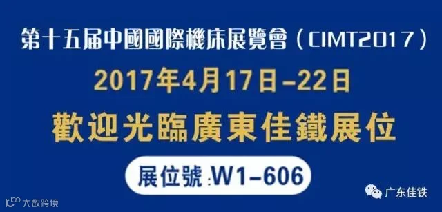 广东佳铁将于将于2017年4月17—22日参加第十五届中国国际机床展览会(CIMT2017),诚邀您的参与!