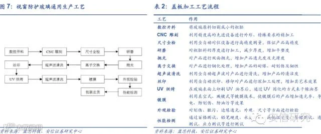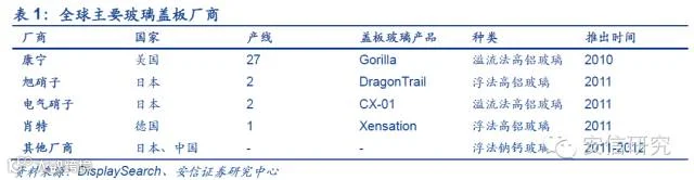 目前溢流高铝玻璃盖板性能最好,霸占高端市场。玻璃盖板基板按生产配方的不同可分为纳钙玻璃和高铝玻璃,按生产工艺的不同则又可分为浮法和溢流法。而目前钠钙玻璃都采用浮法工艺生产,故此目前市面上有三类玻璃盖板基板,即浮法钠钙玻璃盖板基板,浮法高铝玻璃盖板基板和溢流高铝玻璃盖板基板。从配方上来看,钠钙玻璃的强化深度、压应力等参数远不及高铝玻璃;而从工艺上来看,由于浮法工艺制造高铝玻璃有着先天的缺陷(由于密度不均匀导致强化后容易出现翘曲),产品质量不如溢流法,中游玻璃盖板加工厂加工良率低。故此从性能上来看,溢流高铝玻璃最好,高端市场目前主要被溢流高铝玻璃盖板所霸占。