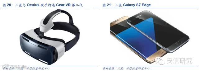 三星采用AMOLED曲面屏的一大核心逻辑是配合VR使用,在Oculus、Sony等外接式VR仍然价格较高的情况下,AMOLED屏的旗舰级手机配盒子可能是最佳解决方案。根据Counterpoint以40个国家的智能手机初步销售数据统计显示,三星Galaxy S7(包括S7和S7 Edge)上市第一个月的销量比去年S6的同期销量高出了25%,美国的销量高出30%,欧洲高出20%,中国高出10%,韩国市场基本持平。Dual Edge屏幕的设计是消费者购买的原因之一,毕竟在Android手机雷同的当下,外观好看再次成为消费者的痛点,包括Vivo Xplay5 Elite和华为新旗舰手机Ascend P9和Mate 8都将采用Dual Edge屏幕。另一个带动销售的原因在于,三星在销售手机时还捆绑了VR头盔,只要购买手机就免费赠送头盔。根据我们对于产业链的调研判断,下半年预计会有大量国内手机厂商才有这样的商业模式推动自己的旗舰机型销售,并推动国产手机品牌的VR战略。