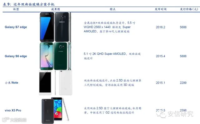 ■经过一个月的行业调研,我们认为玻璃将会是未来包括手机在内智能硬件的重大创新方向,特别是外观结构的创新。玻璃外观件已经在多种智能硬件中应用,未来空间巨大,复杂结构带来空间远超目前盖板!未来有望配合无线充电、光学传感器等应用。玻璃盖板从最早的2D向3D升级,预计未来曲面显示将在智能手机中大量采用,OLED也是旗舰手机采用3D盖板的一大催化。曲面玻璃目前单价大约是传统盖板玻璃单价的3倍,智能手机增速大幅下滑的情况下,正面3D玻璃的渗透率上升将带来行业的显著增长。