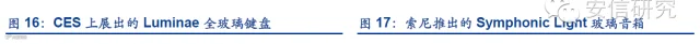 智能硬件时代,无论是功能性还是装饰性的要求,玻璃作为外观件的趋势已经显现,特别是未来有望配合无线充电、光学传感器等应用。2013 CES展中Luminae推出全球首款全玻璃键盘,索尼在今年CES展上推出玻璃扬声器Glass Sound。玻璃材料具有精致、美观、立体感强等优势,被各类消费电子厂商作为展现产品特色的手段也被应用在产品外观件上。伴随玻璃与传感器和显示系统结合,智能硬件可以实现可调光、智能显示、变色车窗、玻璃显示屏等多种应用。金属外壳的一大缺点是无线充电方案较难,未来一定会是无线充电及各类无线传感器的时代,因此玻璃在电学屏蔽方面具有先天优势。