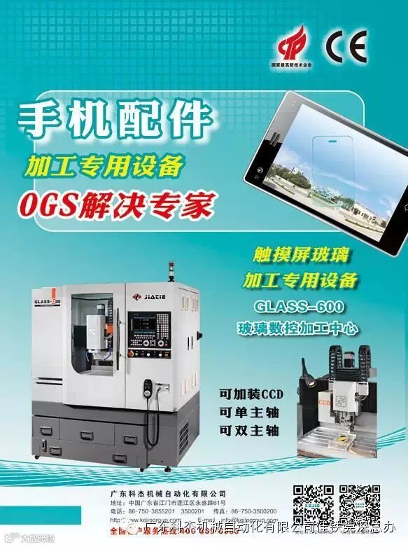 当时触控业最早采用的是G+G结构的玻璃盖板,慢慢随着市场需求逐渐呈现出轻薄化的趋势,这也促使了整个产业链发生了改变。触摸屏结构从G+G发展到G+F,直到现在市场上关注度极高的OGS结构,以及苹果和三星大力推崇的In-Cell和On-Cell。“工艺在变化促使我们的产品也在变化。”刘总还向《显示与触摸》记者介绍到,科杰在加大对于触摸屏和玻璃设备技术创新的的同时,还有针对于像手机或平板电脑这种铝壳的加工新技术,因为传统的铣床加工的非常慢,但是雕铣机速度非常快,光洁度好,而且精度高,能达到很好地表面效果,所以雕铣机具备了相当大的优势。
