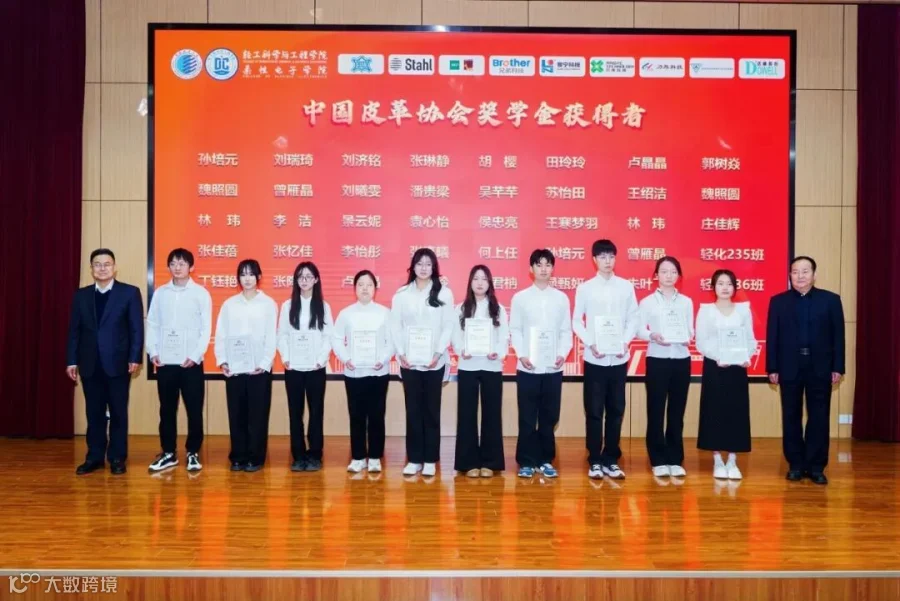 张西文、马建中、陈飞、谢文伟等嘉宾为“中国皮革协会-杨正奖学金”等系列奖学金获奖代表颁奖。