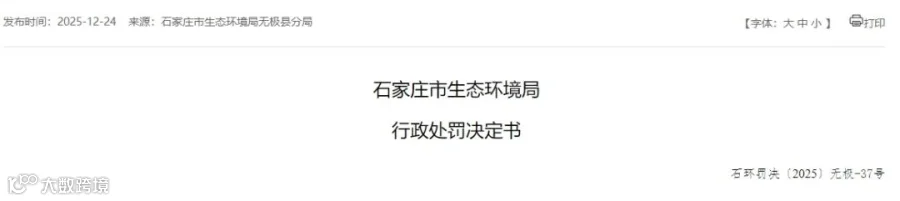 日前,石家庄生态环境局无极县分局对当地一皮革制品企业开出一张行政处罚单。