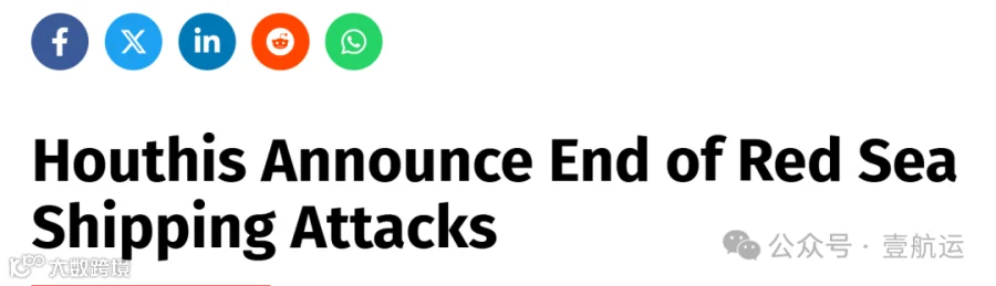 刚刚!胡塞武装正式宣布停止对红海商船袭击,红海危机结束 丨壹航运