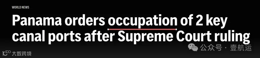 壹航运综合彭博社和法新社报道称:巴拿马总统穆利诺星期一下令临时接管长江和记实业有限公司旗下子公司运营的两座港口,此前巴拿马宪法法院裁定长和的特许经营权合约无效。