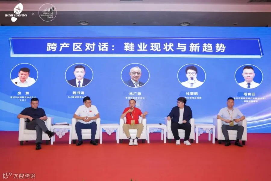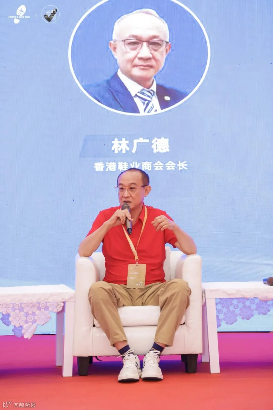 8月22日下午展会期间,举办了2025中国鞋都(温州)鞋业新势力论坛,本会林广德会长作为嘉宾受邀上台对话分享,跨产区对话:鞋业现状与新趋势。