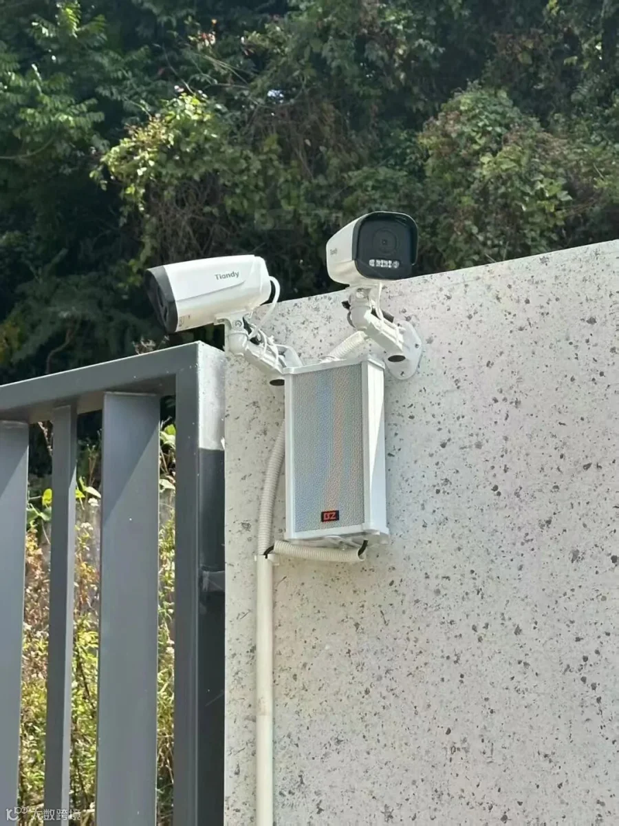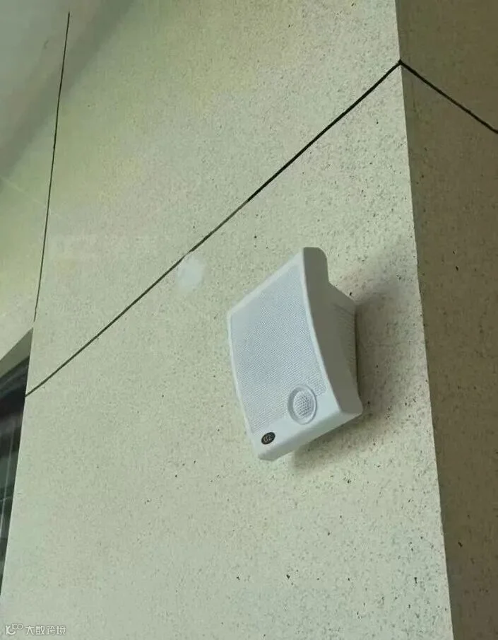 因地制宜配设备:室内壁挂音箱+室外防水音柱