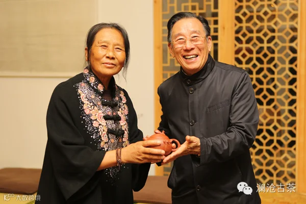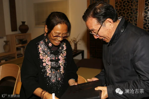 一位特殊的老茶友的到来,让现场充满了暖意。老爷子因2012年的“乌金十年暨古茶传奇之夜”与茶妈妈第一次见面,听茶妈妈要到扬州,特意前来品茶会面,将自己珍藏的“开心果”紫砂壶,赠予了茶妈妈。而茶妈妈也特意回赠09年乌金,纪念此次茶人茶友的相会。
