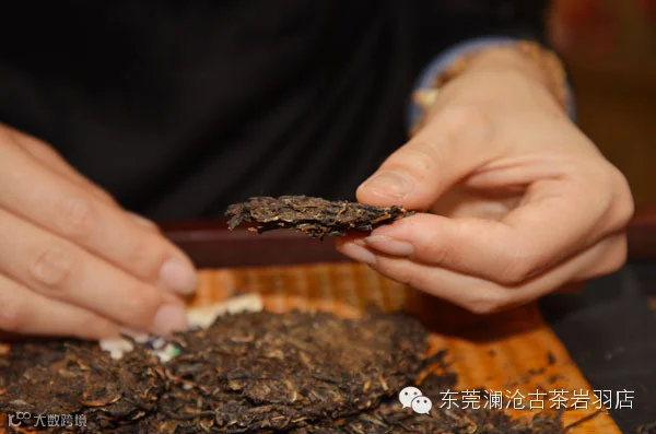 ●将片状的小茶砖细心掰散