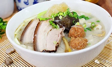 ——是陕西特有的传统风味佳肴,二十世纪五六十年代非常盛行。制作过程中加入青菜、丸子、发好的面皮、白肉片等,用高汤一浇,碗中的三鲜颜色就凸显出来了,正所谓“丸子黄、肉片红、橡皮奶色”。因其选料讲究、汤鲜味美、营养全面而深受人们喜爱。