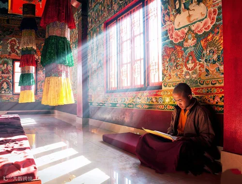 一位年轻的和尚正在锡金喜马拉雅州的纳姆奇学习;熏香的烟雾让我们看见了明亮的光柱;虽然我对他及庙堂拍的很久,该和尚却从来没有看我一眼,而是深深沉浸在读书的乐趣中。