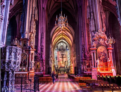 每年有超过300万人参观圣斯蒂芬大教堂,使得其成为维也纳最著名的景点。该教堂座落于市中心,始建于12世纪。游客可以上到塔顶领略维也纳的全貌或下到拱底由导游讲解该建筑的历史。