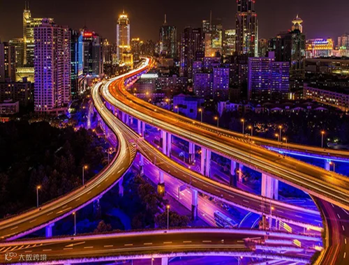 通过公路上川流不息的奔驰的汽车的慢曝光是形象地诠释这个城市的常规方法,摄影师通过捕捉道路下方周围的洋紫光线将此场景得到了升华。灯光使人想起俱乐部的灯光,观众会想起该城市的勃勃生机。