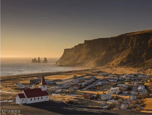 崎岖的山崖高耸在小村上方,该小村位于冰岛最南端。该地的黑色砂滩被誉为世界上最美丽的沙滩之一。