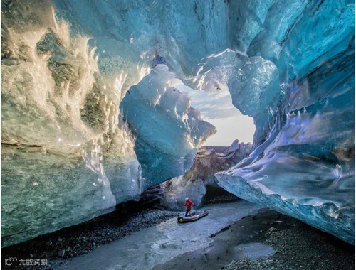 一位漂流者在瓦特纳冰原上,瓦特纳冰原是冰岛最大的冰川。冰岛横跨在大西洋中部海岭中间,此地是北美洲板块与欧亚板块的分界点,造就了大范围的活跃火山区。