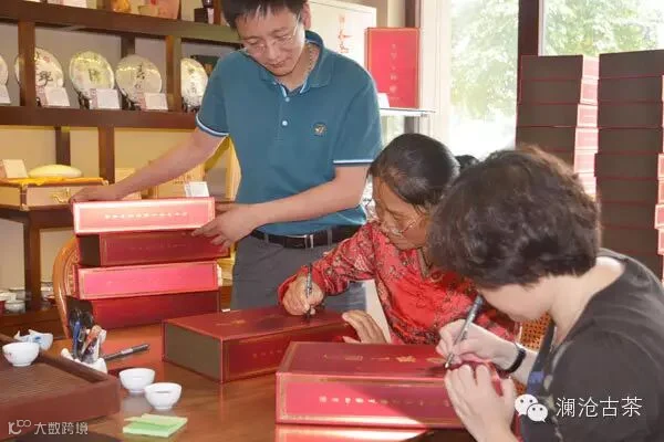 茶友拿来数件“方圆之缘”让茶妈妈签名留念