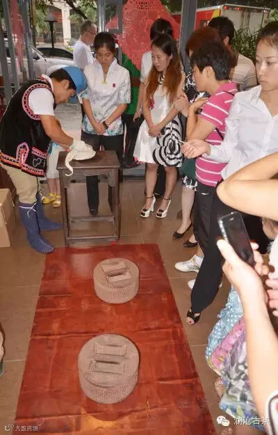 现场石磨压茶演示