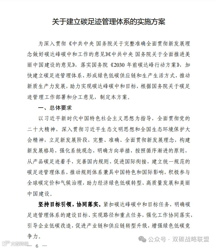 《关于建立碳足迹管理体系的实施方案》