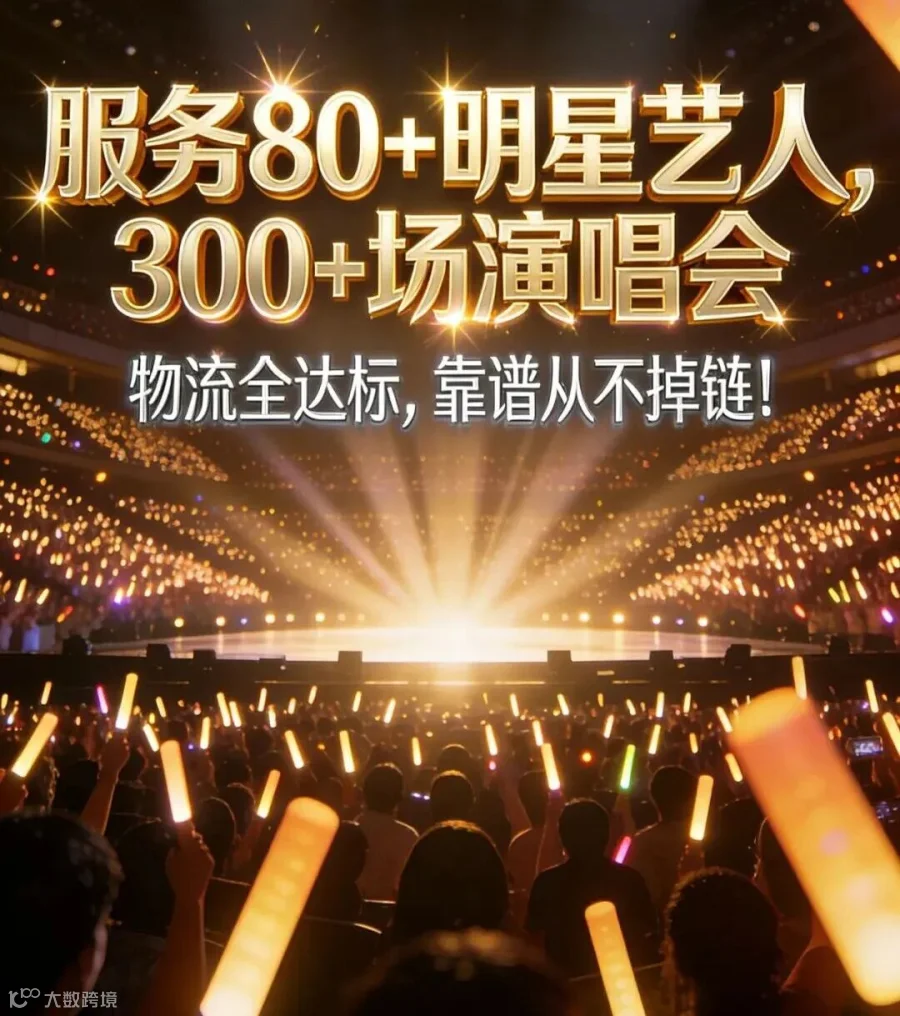 300+场零失误,80+明星信赖,这不仅是一份物流成绩单,更是对“责任”二字的最好诠释。未来,我们仍将以专业、细心、靠谱的态度,守护每一场舞台的精彩,见证每一片荧光海的绽放!