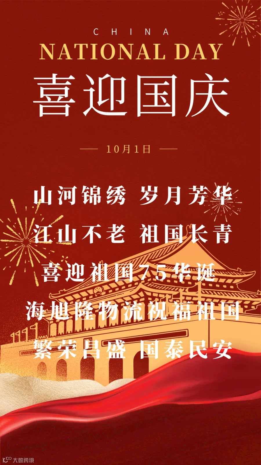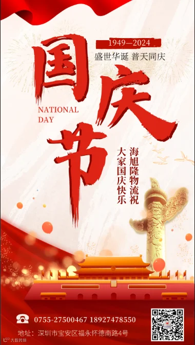 感谢大家长期以来对我司的支持与厚爱!祝大家度过一个愉快的国庆长假,节日快乐!