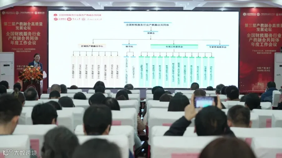 2026年1月10日,由全国财税服务行业产教融合共同体主办,融智共享,广西经贸职业技术学院等单位承办的第三届产教融合高质量发展论坛暨全国财税服务行业产教融合共同体年度工作会议在广西南宁顺利召开。