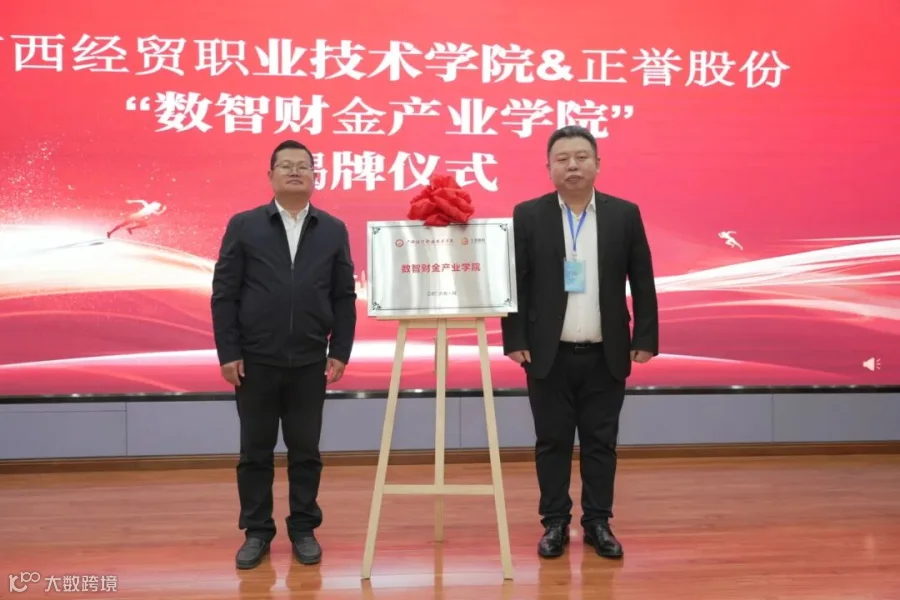 会上,广西经贸职业技术学院与正誉股份携手共建的“数智财金产业学院”正式揭牌成立。学院将聚焦智能财税、金融科技等领域,探索“专业链、人才链”与“产业链、创新链”的有机衔接,为行业输送亟需的数字化财经人才。